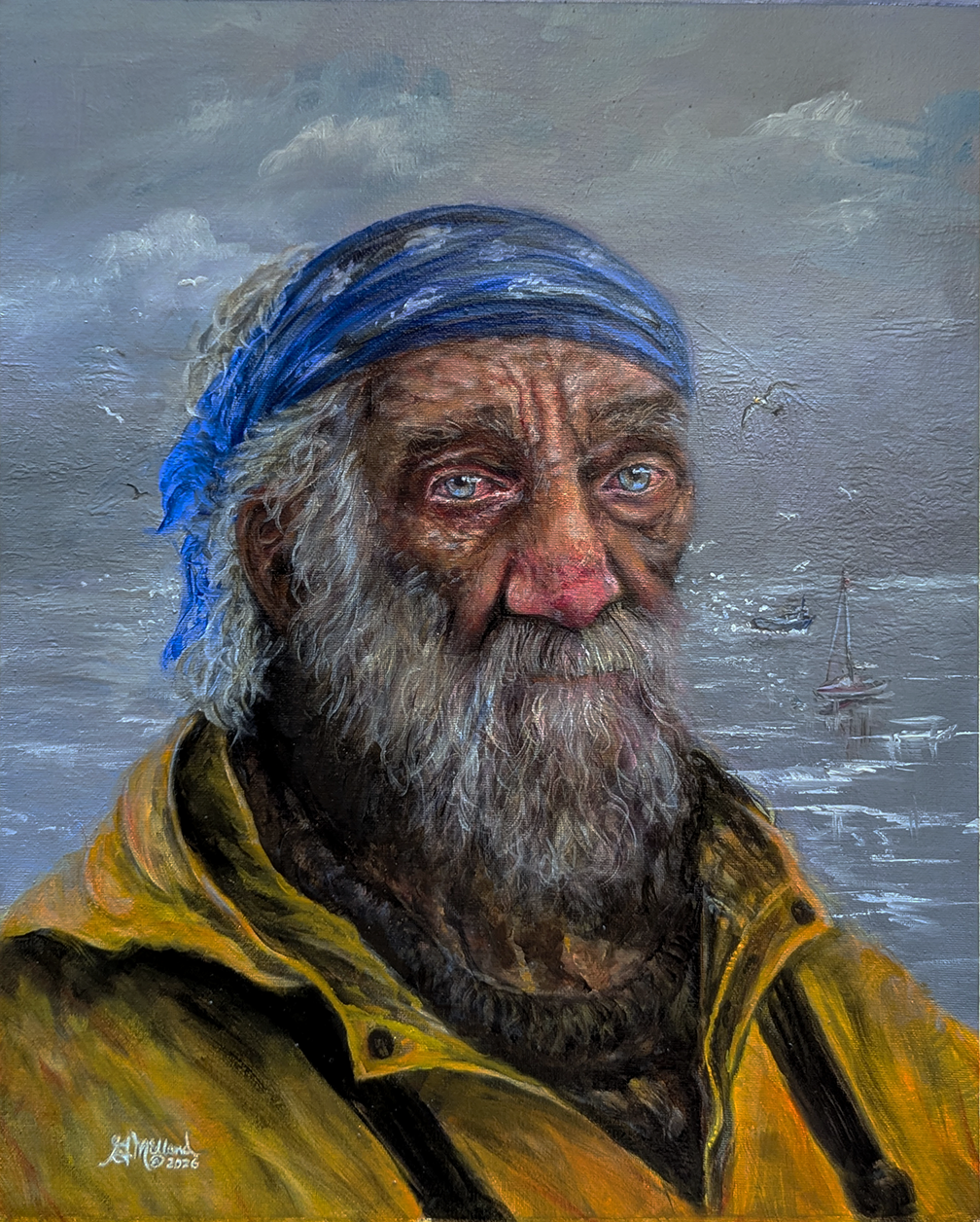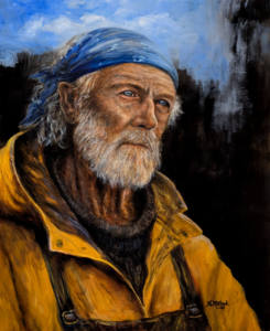 #2 fisherman in a series of 316″ x 20″ Oil on Cradled Masonite panel